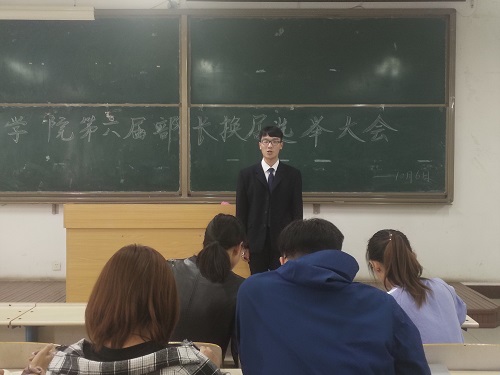 自信源于承担,成功始于责任。为了给学生会干部队伍注入新鲜血液,10月13日下午,vwin德赢ac米兰官方网在工科楼2—112举行学生会部长换届选举大会,vwin德赢ac米兰官方网团总支书记靳雪银、辅导员王珊珊、第六届学生会主席团成员参加了此次换届选举大会。