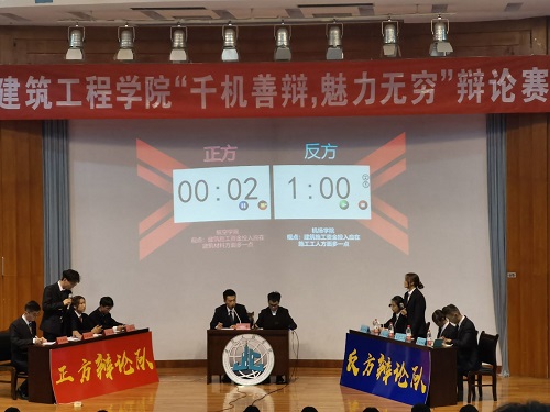 本次辩论赛共分为开篇立论、攻辩、自由辩论、总结陈词四个环节。首先,正方航空工程学院代表队陈述观点:“建筑施工资金投入应在建筑材料方面多一点”,持反方观点的vwin德赢ac米兰官方网代表队就“建筑施工资金投入应在施工工人方面多一点”展开论述。vwin德赢ac米兰官方网辩手以严谨的语言,周密的逻辑,将我方观点从工人的收入、就业情况和家庭负担三个方面加以论述,晓之以理,动之以情,在辩论赛的开始便吸引了评委的眼光。在随后的攻辩环节中,双方更是争锋相对、步步紧逼、侃侃而谈,现场气氛迅速升温,达到白热化阶段。尤其在自由辩论环节,选手妙语连珠,慷慨激昂,掷地有声,vwin德赢官网辩手王思瑶的“连环九问”更是将现场的气氛推向高潮,掌声络绎不绝。最后,vwin德赢官网四辩李素通在总结陈词时声情并茂,以辩论道,以论明志,为本次辩论画上了圆满的句号。最终,vwin德赢ac米兰官方网辩论队以87分的成绩险胜对方,并获得第三名的优异成绩。