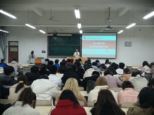 会议伊始,靳老师就毕业生的档案迁派问题,实习生的手续交接问题进行阐述,并对毕业生学习和工作规划做出详细分析,使忙于毕业论文和课程设计的学生,能够专心投入学习中。靳老师结合近几年的考研结果,对将要调剂和参加考研复试的学生进行耐心指导,包括考研复试技巧、如何指定复试简历、复试问答等,在一定程度上为部分同学指明了方向。她表示,希望同学们认真对待毕业论文,要求每个学生对毕业学分进行精准排摸,做好查漏补缺。会议中,靳老师结合2021年就业形势及各专业就业情况,就学生当前就业心理及就业路径提了几点希望,勉励学生把握时代机遇,着眼未来,立足当下,培育国家情怀,增强竞争择业和服务基层的观念。同时建议大家静下心来分析行业对人才的要求,弥补差距,顺利就业。提醒毕业生要充分利用学校就业信息平台、网络资源等多渠道多平台获得就业信息、投放简历,做好求职准备,提升应聘效果。