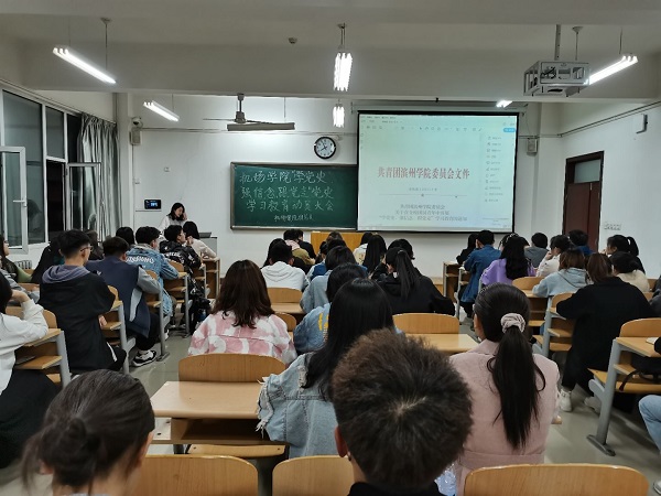 为响应滨州学院校团委有关党史学习教育号召,认真贯彻落实和开展相关教育工作。vwin德赢ac米兰官方网于3月28日在8教508教室,开展了“学党史、强信念、跟党走”党史学习教育动员大会。本次由vwin德赢ac米兰官方网学生团总支书记靳雪银同志主持,非毕业班全体团干部参加。