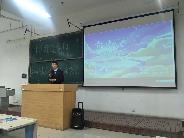 为扎实推动vwin德赢ac米兰官方网毕业生就业工作的顺利开展,提供优质就业平台,提升就业质量。3月29日上午十点,vwin德赢ac米兰官方网于工科楼2-112教室举办“2021年度春季校园招聘会”活动。活动由vwin德赢ac米兰官方网学生科科长靳雪银负责主持,中国建设银行山东省分行前来参加,vwin德赢ac米兰官方网应届毕业生积极到场参加。