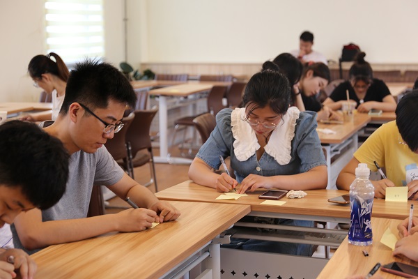 本次毕业生团体心理辅导活动主要分为两个阶段。第一阶段体验活动为“人生三五样”,康纯佳老师为每位同学分发便签纸,要求学生记录各自人生中最重要的五件事,并按照活动流程进行便签纸的“放弃、重组”环节,并由学生代表讲述自己所选出的“人生五样”,分别说明选择其中四项进行“放弃”的次序、选择这五项进行“重组”的原因以及在选择过程中所经历的心理过程和自身感悟。第二阶段为“心理沙盘”体验游戏,同学们积极投入,安静抚沙,用心挑选、摆放沙具。“一沙一世界,一物一心田。”同学们通过在沙盘中放置各种沙具,把抽象的语言表达变换成具体可见的事物,将潜意识里的情感生动地表现在眼前的沙盘中,无声地诉说出自己内心的故事。在康纯佳老师的引导下,同学们放下了自己的思维定势,诚实地聆听自己,并借助沙盘与沙具恰当地表达心声,从而有效地进行自我疏导。在两个多小时的心理辅导活动过程中,同学们打开了各自通向自己心灵的窗户,达到了“认识自我,放飞心灵”的预期效果,从而让各位同学戒骄戒躁,不忘初心,以积极乐观的态度为人生理想而奋斗。至此,本次毕业生团体心理辅导活动圆满结束。