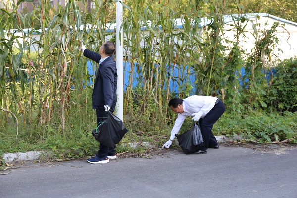 在党总支的带领下,师生党员们对运动场、实验楼附近道路进行了彻底清理。党总支书记张健以身作则,率先垂范。在两位书记的带动下,全体党员都积极投入到义务劳动中,现场干劲十足,气氛活火热,党员们带着扫帚、铁锨、垃圾袋等,在分片划好的各个区域,清扫枯枝落叶、杂草杂物、树枝上挂着的坠物等,并将垃圾分类装好,放置指定地点。