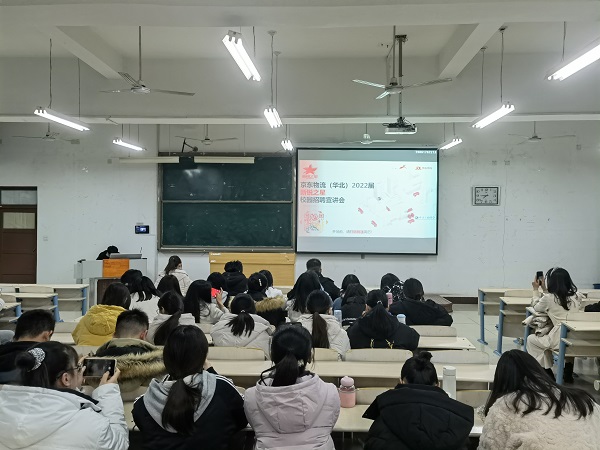 此次会议采用线上+线下的形式开展,严格落实疫情防控要求,以视频会议的方式同大家见面。会上借助京东物流发展的宣传片,向同学们介绍了京东集团的发展规模和京东物流的强劲实力,并着重向同学们详细解读了京东物流2022“新锐之星”项目。他指出,“新锐之星”项目是京东物流战略性人才招募及发展项目,旨在通过设置一线历练、轮岗学习、管理历练等体系化的3年培养,打造出一支具备京东精神,深耕物流业务,聚焦基层管理和专业成长的新锐之师,支持物流下沉战略落地与区域经营转型。同时,负责人王聪还就同学们关心的专业对口、所需人才素质、实习生的发展机会和上升空间、劳动的薪资待遇与福利等问题进行了详细的介绍。他还指出,公司也会开展相关技术培训会,请同学们不要有过多的顾虑。最后,在互相交流环节,认真解答了同学们的疑问,并真诚地希望各位同学顺利实现自己的梦想,不负青春美丽韶华。至此,此次招聘宣讲会在热烈的掌声中圆满结束。