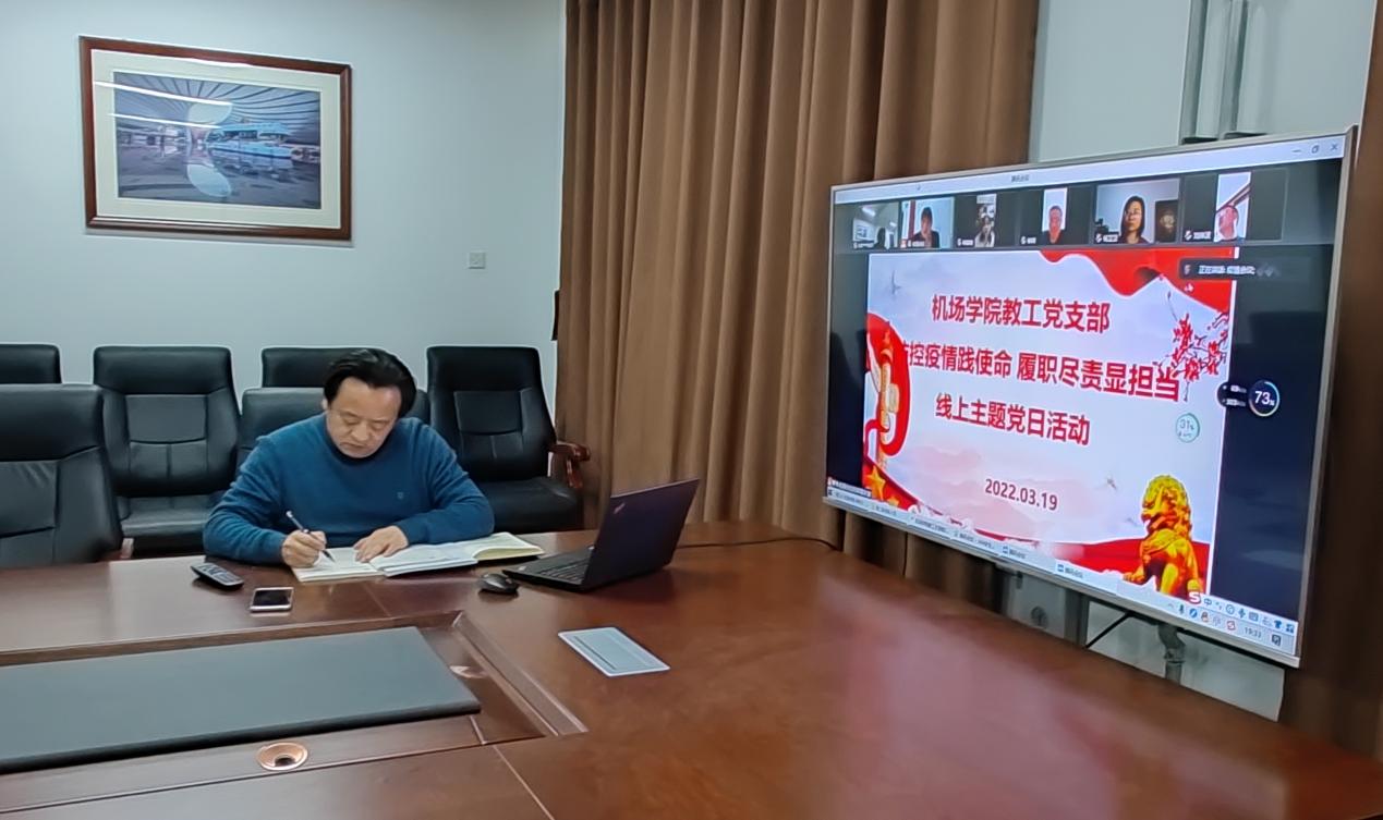 3月19日教工党支部全体党员相聚云端,开展“防控疫情践使命 履职尽责显担当”主题党日活动。教工党支部书记石爱平全文领学了习近平总书记在3月17日中共中央政治局常务委员会会议上的重要讲话精神,并分享了个人的学习体会。党总支书记张健、院长韩春艳分别从不同角度分享了学习心得和体会。