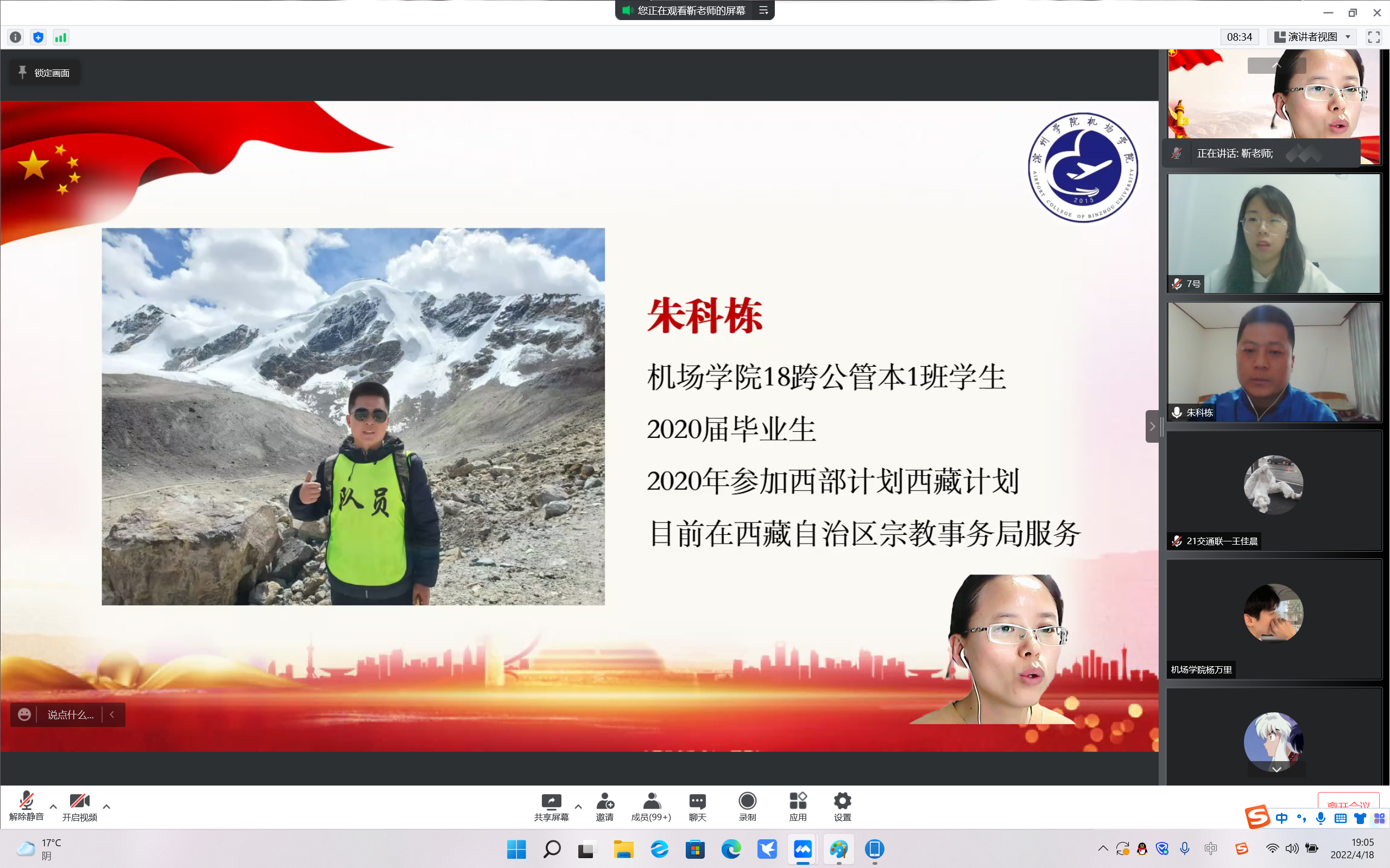 靳老师对两位西部计划志愿者进行简单介绍后,宣讲正式开始。西藏专项志愿者朱科栋于2020年毕业后报名西部计划西藏专项,目前在西藏自治区宗教事务局服务,会上他主要从西部计划西藏专项出发,对服务地、服务内容、政策支持、福利保障、选拔条件等方面为同学们进行详细解读,并分享了自己在服务过程中的奋斗故事和感悟,动员同学们可以积极报名、投身基层。山东计划志愿者翟丽婷于2021年毕业后报名山东计划,目前在山东淄博桓台县委服务,会上他主要对山东计划做了详细的解释,并分析了山东计划对应届毕业生求职中的优势所在,同时分享了在基层服务的经历与感受,鼓励同学们弘扬“自强不息守正出奇”的精神,积极在祖国最需要的地方贡献属于自己的青春力量。两位同学的宣讲让同学们对西部计划、山东计划昌盛了浓厚的兴趣,会上有十余位同学表示希望毕业时能到祖国需要的地方去奉献青春,会后有2名毕业生已经填写了西部计划报名表。