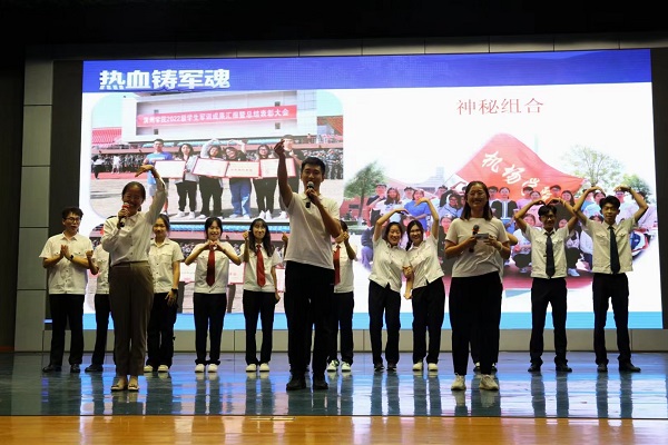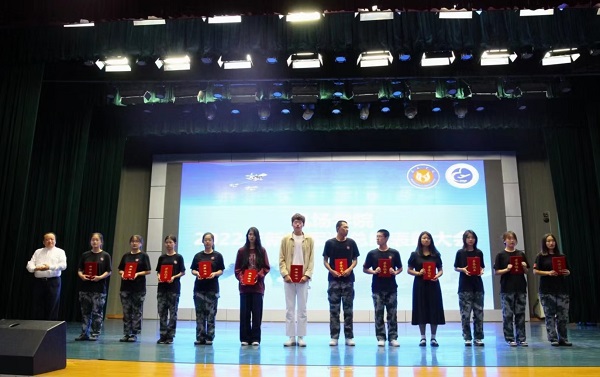 此次表彰大会开始前,大家共同观看了军训过程中的精彩瞬间,回顾了本次军训的难忘时光;大会上分别为定向越野比赛、叠军被大赛、军训心得评比中表现优异的同学和军训优秀宿舍、优秀班级以及军训优秀志愿者、军训优秀标兵进行了颁奖。在颁奖过程中还穿插了22级新生的多项表演,有浪漫温馨的歌曲演唱,有威武大气的武术双截棍,还有三位辅导员和班主任助理们的惊喜演唱。“雄关漫道真如铁,而今迈步从头越”。军训的圆满结束只是大学生活的开始,希望同学们自觉巩固军训成果,把良好的行为习惯、严明的作风纪律,带到今后的学习和生活中,求知问学,遵规守纪,用青春的步伐,不断走向出彩人生。