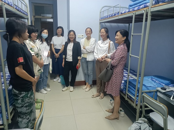 在学生宿舍,领导老师们每到一处,便向同学们传达学校疫情防控政策要求,及时帮助大家解决遇到的实际困难和问题,把学校和学院的关心与爱护送到同学们的心坎上,切实关心学生身体健康状况,将学校疫情防控政策落到实处。走访过程中,院长韩春艳语重心长地叮嘱同学们,希望同学们继续严格遵守学校各项疫情防控措施,时刻关注疫情变化,做好个人健康自我检测;注意宿舍卫生,勤通风、勤消毒等等。此外,韩院长提到在专业知识的学习上,强调要充分利用业余时间加强锻炼,保持良好的睡眠,注意饮食卫生和食品安全,保证身心健康,保持积极向上的状态,认真学习,充实地度过疫情防控期间的校园文化生活。