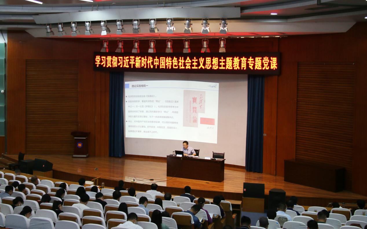 5月23日下午,党委委员、副校长胡波在明德报告厅以《为何要修改党章》为题,为分管部门和航空类学院教工讲主题教育专题党课。vwin德赢官网党总支书记张健、院长韩春艳、副院长李永及全体教工参加专题党课学习。