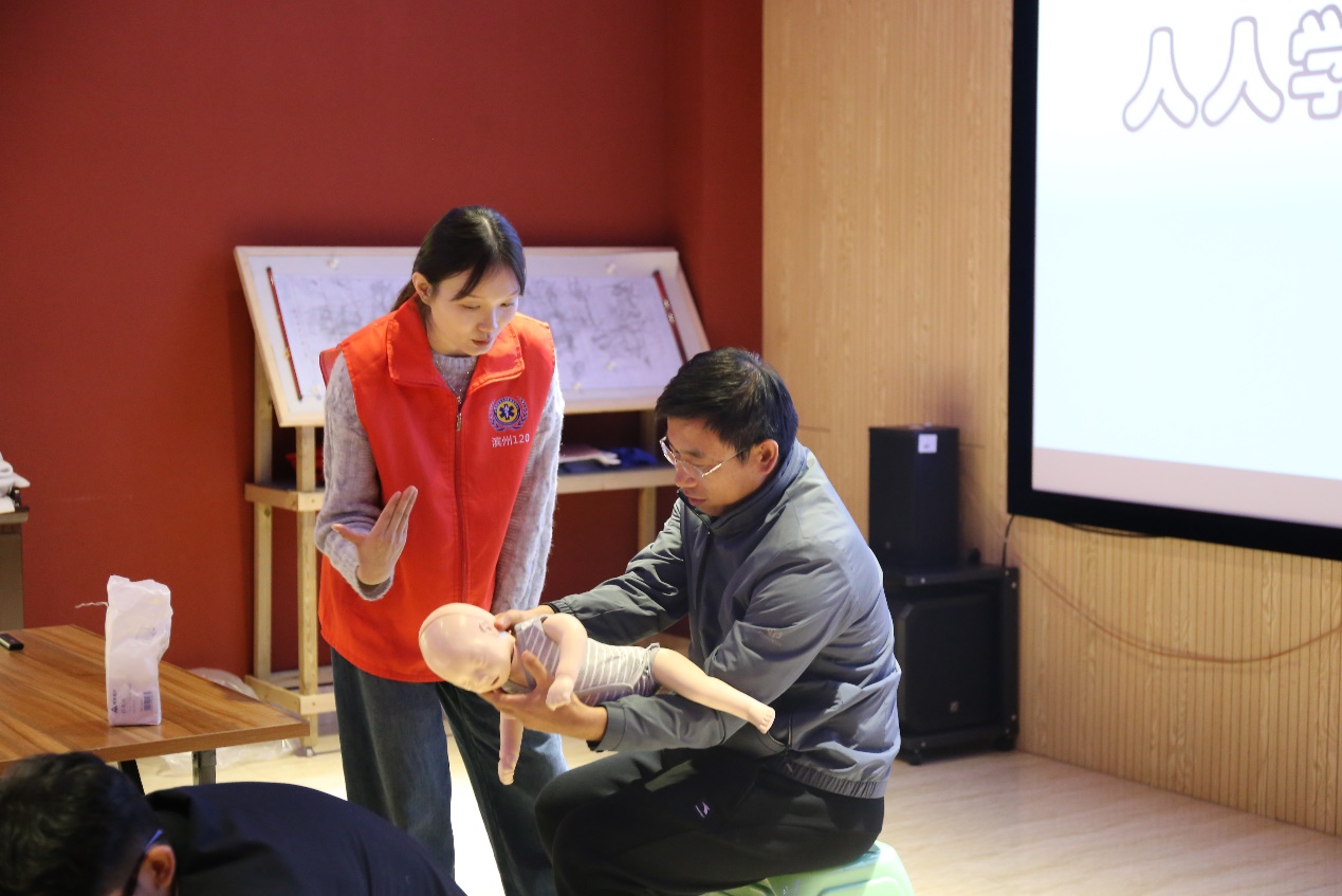 vwin德赢ac米兰官方网的全体党员同志在黄河社区刘清远主任的陪同下,依次参观了黄河社区的健康小屋、红色影院、活动厅等功能区,进一步了解了黄河社区服务站的基本情况及各项党建工作的开展情况,双方还就“双报到”“微心愿”的工作细则进行了互动交流; 随后,一行人来到党员活动室,共同参与黄河社区紧急医疗救援指挥中心工作人员开展的应急救护知识与技能培训系列活动,通过实例讲解、示范操作、现场演练等形式,围绕常见伤害的急救处理、心肺复苏、海姆立克急救法、互救知识等进行知识技能培训,现场为大家演示了具体操作步骤,全体党员不但聚精会神倾听了医护人员的讲解,而且积极参与实操练习,专业人员一一给予指导,及时纠正急救误区。