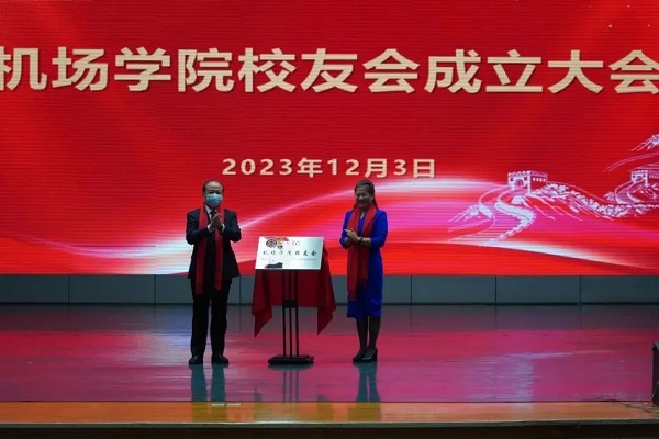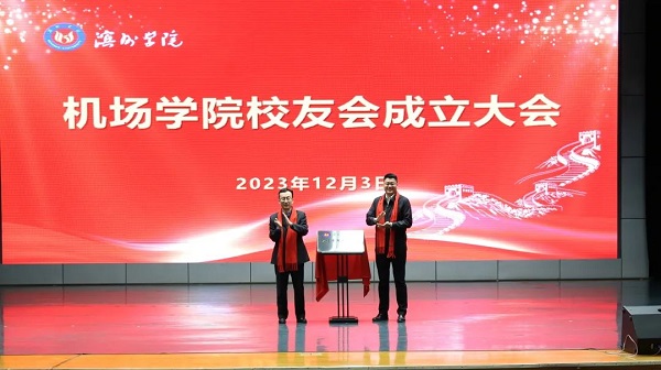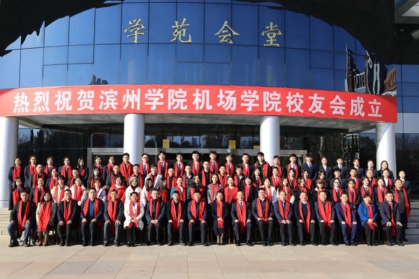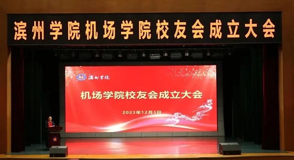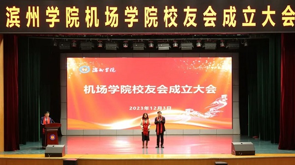 滨州大高机场有限公司董事长、总经理韩清喜致贺词,与林晓金为vwin德赢ac米兰官方网校友会揭牌。