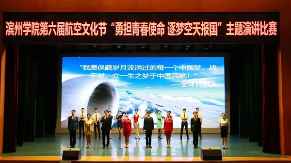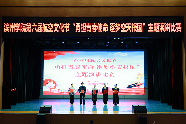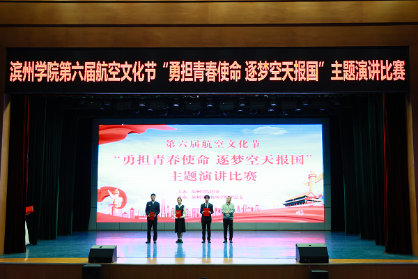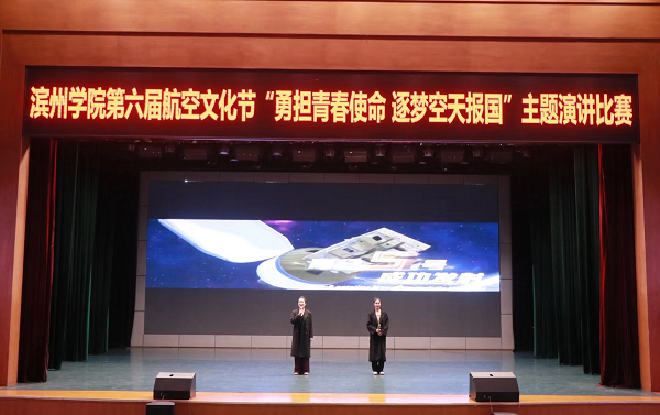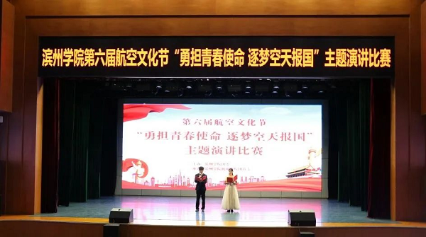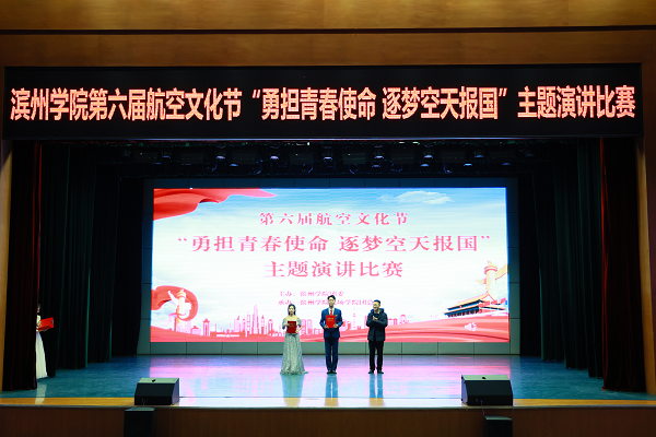 12月11日,由校团委主办、vwin德赢ac米兰官方网团总支承办的第六届航空文化节“勇担青春使命 逐梦空天报国”主题演讲比赛决赛在学苑会堂成功举办。本次比赛邀请中国文化信息协会文化产业专业委员会特聘会员程锐、滨州学院办公室副主任李文胜、学生工作处副处长李华、发展规划处副处长谢攀担任评委,校团委副书记张立强、vwin德赢ac米兰官方网党总支副书记刘法堂以及二级学院部分辅导员老师出席本次活动,共有十个学院代表队参赛。