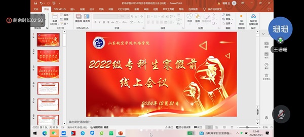 为了帮助学生深入了解专升本相关政策,明晰毕业流程与注意事项,vwin德赢ac米兰官方网于2024 年 12 月 21 日召开专升本政策宣讲及毕业前后工作提醒线上会议,此次会议由2022级辅导员王珊珊主讲,2022级安检专业全体学生参加。