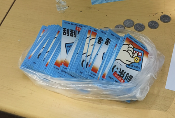 工作人员事先精心策划并组织同学们准备了丰富多彩的刮刮乐卡片,每张卡片上都印有不同主题的“快乐任务”,如“给自己一个微笑”、“与室友分享一个笑话”、“在校园内散步并欣赏风景”等。学生们可以随机选择刮开卡片上的涂层,揭晓隐藏在背后的惊喜。