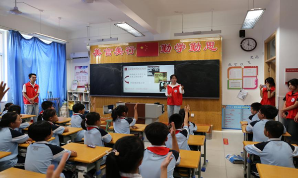 2025年6月30日,vwin德赢ac米兰官方网“星”火“核”力宣讲团走进山航附小,为四年级三班的同学们带来了一场别开生面的“两弹一星”人物宣讲活动。此次活动旨在通过生动有趣的方式,向同学们介绍“两弹一星”背后的英雄人物,传承和弘扬“两弹一星”精神。