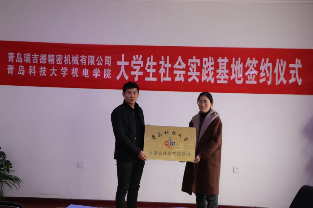 12月15日上午,Beat365官方网站、青岛瑞吉德精密机械有限公司共建社会实践基地揭牌仪式在瑞吉德精密机械有限公司举行。Beat365官方网站党总支副书记兼副院长王伟,瑞吉德精密机械有限公司总经理段守源及瑞吉…