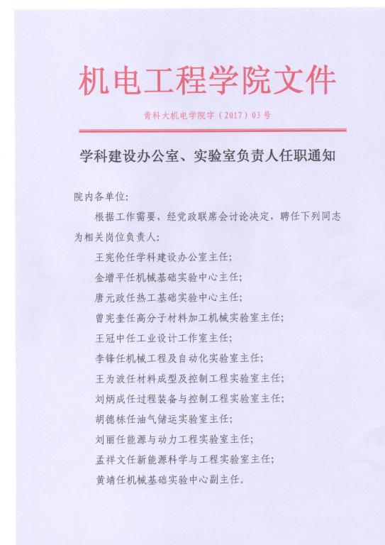 Beat365官方网站学科建设办公室、实验室负责人任职通知