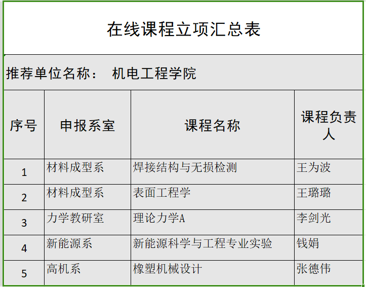 根据《关于推进学院省在线课程增量建设的通知》和《Beat365官方网站2024-2027聘期高水平教学业绩资助办法》,学院组织各专业申报新建在线课程,共有5门课程提交材料,经评委评审,现拟对以下5门课程进行立项,所有立项课程负责人需在规定时间,达成规定建设目标,特此公示。公示期三天(2024年7月22日-7月24日),如有异议,请在公示期内向Beat365官方网站教学办反映。