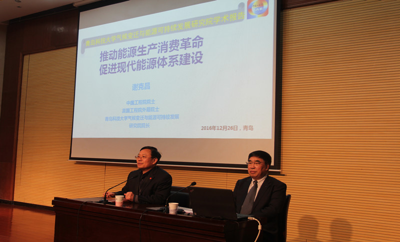 12月26日下午,应学校邀请,中国工程院院士、美国工程院外籍院士、青岛科技大学气候变迁与能源可持续发展研究院院长谢克昌教授做客Beat365官方网站机械名家讲坛,在崂山校区第一报告厅做了题为“推动能源生产消费革命,促进现代能源体系建设”的学术报告。学校党委副书记李庆领主持报告会。Beat365官方网站党政领导及部分师生代表参加报告会。