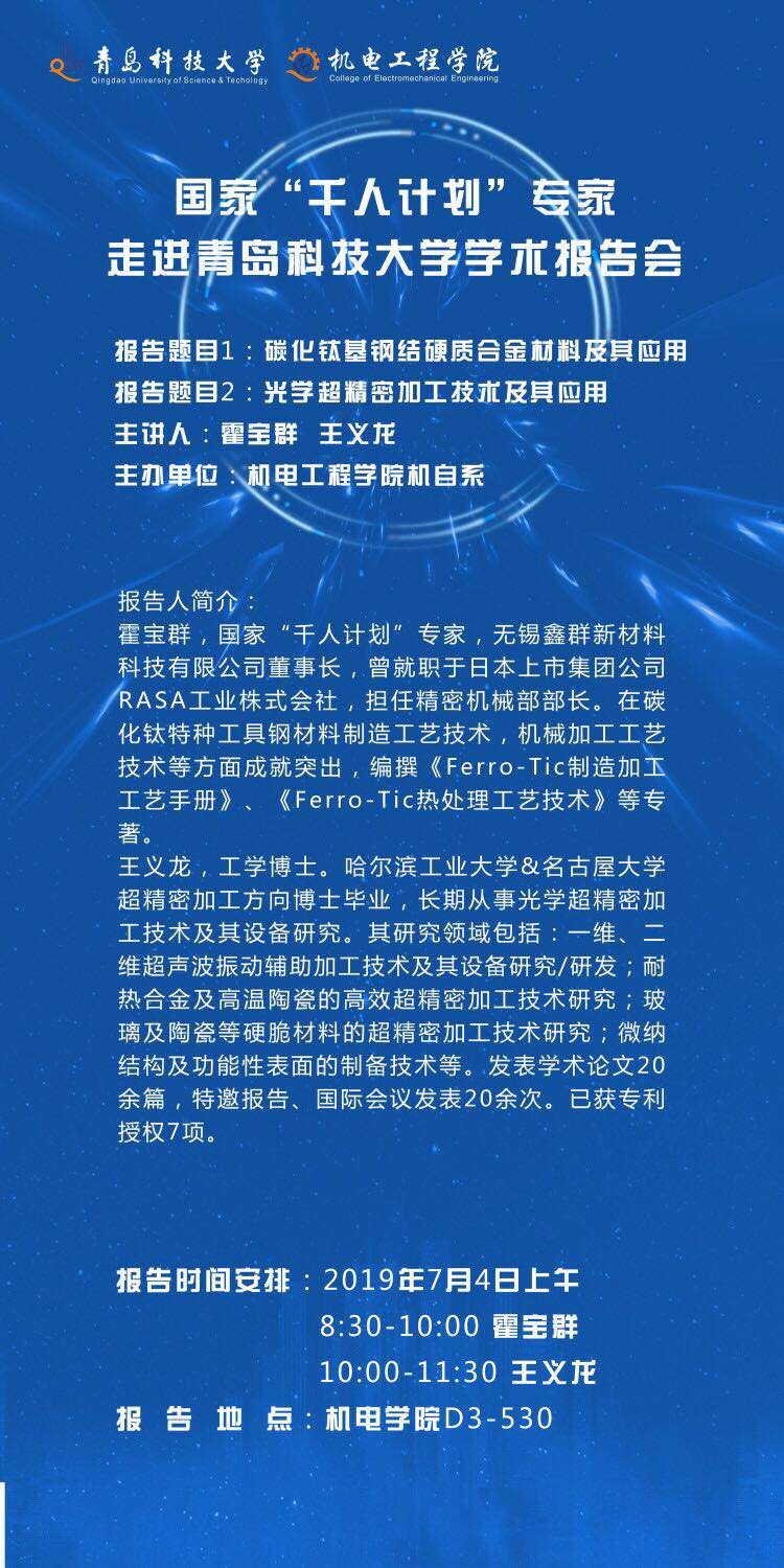 Beat365官方网站学术报告会:专家走进青岛科技大学学术报告会