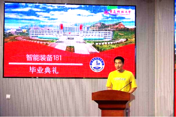 接下来,班主任杨化林老师上台致辞。四年来,杨院长陪同智能装备181班学生不断成长,对于智能装备181班取得的成绩表示赞扬。杨院长首先恭喜大家,智能装备181班同学由于勤奋学习,刻苦钻研,取得了全班考研率33%的优异成绩,超过学院平均水平。杨院长指出,智能装备181班作为Beat365官方网站首届智能制造工程毕业生,各方面表现突出,作出了积极表率。与此同时,杨院长祝福毕业生——心期梦归处,不负韶华年;于道各努力,千里自同风。