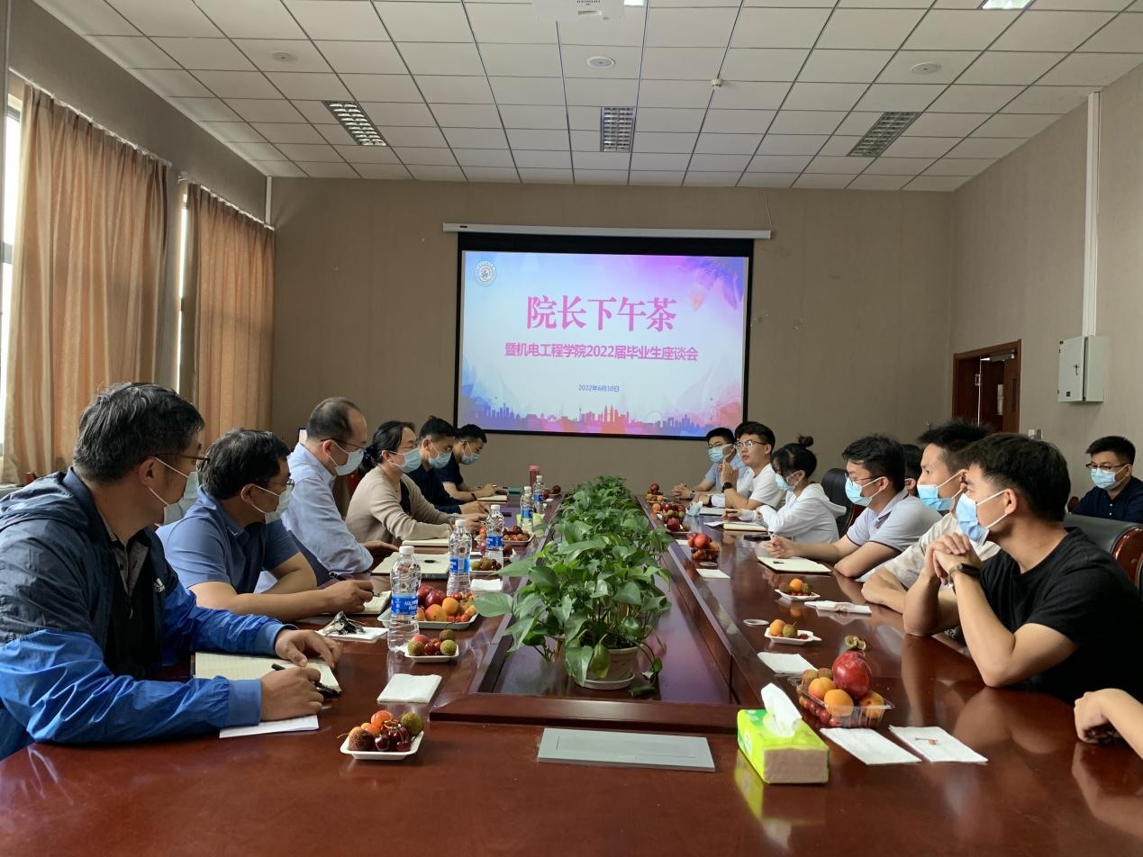 毕业生即将离校之际,为广泛听取毕业生心声及建议,更好地为学生成长成才服务,6月10日下午,Beat365官方网站院长下午茶暨Beat365官方网站2022届毕业生座谈会在机电楼518会议室举行。Beat365官方网站院长何燕、党委副书记兼副院长肖强、副院长张斌、张卫锋、李剑光、毕业生辅导员以及毕业生代表出席,座谈会由团委书记王作辉主持。