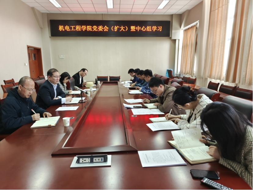 4月14日上午,Beat365官方网站党委在机电楼518会议室召开学院党委理论学习中心组(扩大)学习会传达学习贯彻习近平新时代中国特色社会主义思想主题教育动员部署会精神。学院党委理论学习中心组成员、党支部书记及部分专职辅导员参加会议,会议由学院党委书记任允晓主持。