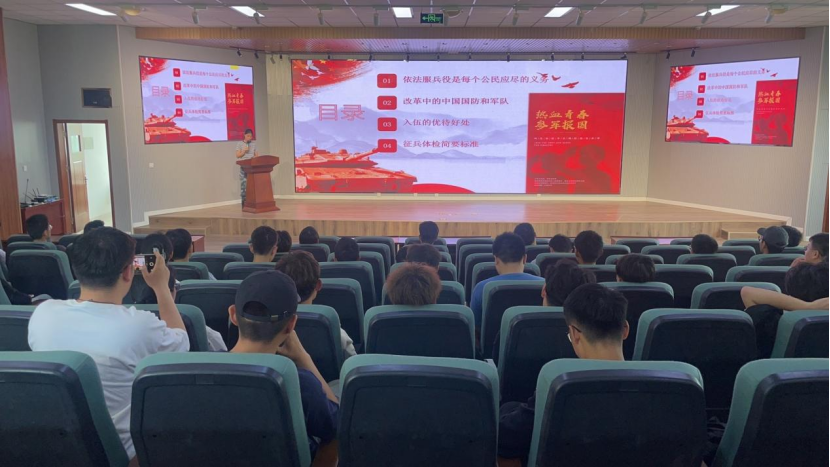 会上,郭群以《强国有我,强军有我》为题,从四个方面进行详细生动地宣讲:一是依法服兵役是每个公民应尽的义务;二是改革中的中国国防和军队;三是入伍的优待好处,详细介绍了征兵政策、经济待遇、发展空间、退役优待政策等;四是征兵体检简要标准。通过本次宣讲,勉励同学们将自己的青春奉献于军营,将才华奉献于祖国,用青春与热血谱写人生最绚丽的华章,为建设和保卫祖国贡献出自己的力量。