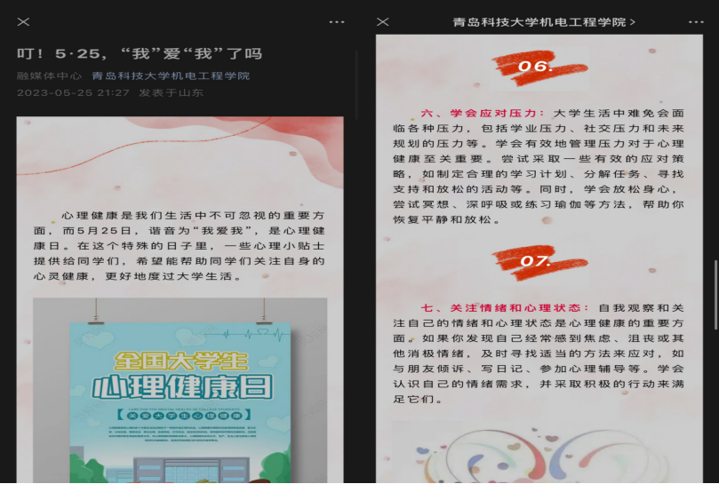 大学生活充满了学业压力、人际关系和生活变化等各种挑战,在这个特殊的日子里,学院定期发布心理小贴士,帮助同学们重视自我关爱、培养良好的人际关系和学会寻求支持与帮助等。