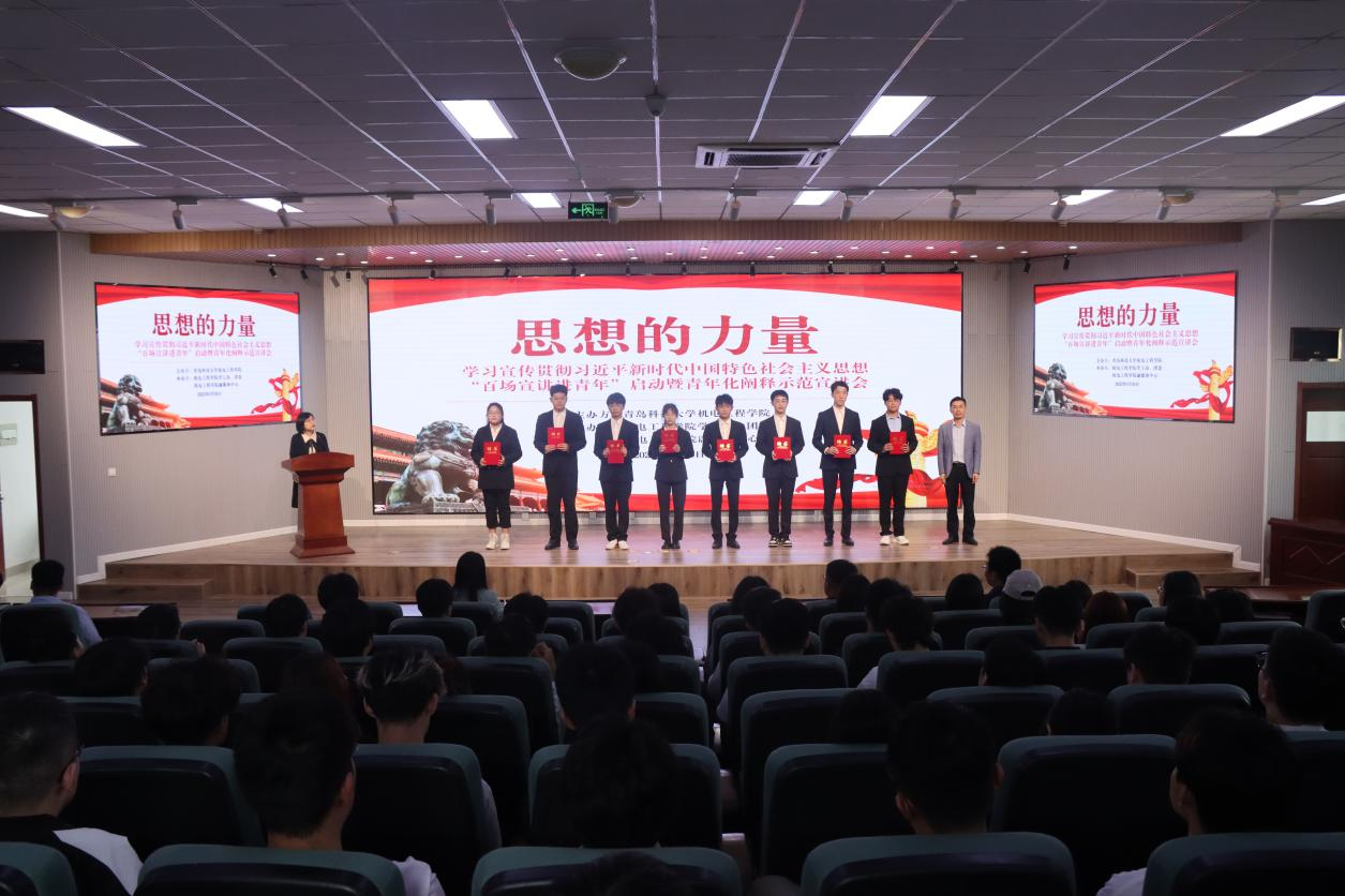 会上,肖强为学院“学习习近平新时代中国特色社会主义思想”宣讲团成员颁发聘书。学校“理想科大”宣讲组成员、马克思主义学院党史党建研究所所长宗芳作《党的自我革命的三维阐释》示范宣讲,从理论维度、历史维度、实践维度等三个维度对党的自我革命进行深刻解读,带领师生进一步学习贯彻习近平新时代中国特色社会主义思想。