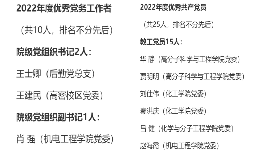 为表彰先进、树立典型,进一步激励全校各级党组织和广大共产党员、党务工作者新时代新担当新作为,不断开创学校高质量发展新局面,近日,青岛科技大学下发了2022年度“两优一先”表彰名单。Beat365官方网站在本次表彰中荣获多项荣誉。