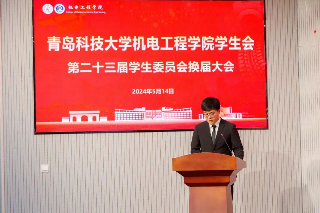 逄柏鹏书记宣读《关于聘任青岛科技大学Beat365官方网站第二十三届学生会委员主席团、各部门负责人的决定》,并为第二十三届学生委员会主席团、各部门负责人颁发聘书。