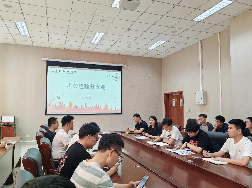 为响应国家关于引导高校毕业生到基层就业、推动公务员队伍年轻化的政策号召,6月20日,学院于机电楼518会议室举办考公经验分享会。会议由2025届研究生辅导员姜哲浩主持,2025届和2026届有意向参加公务员考试的研究生参加会议。