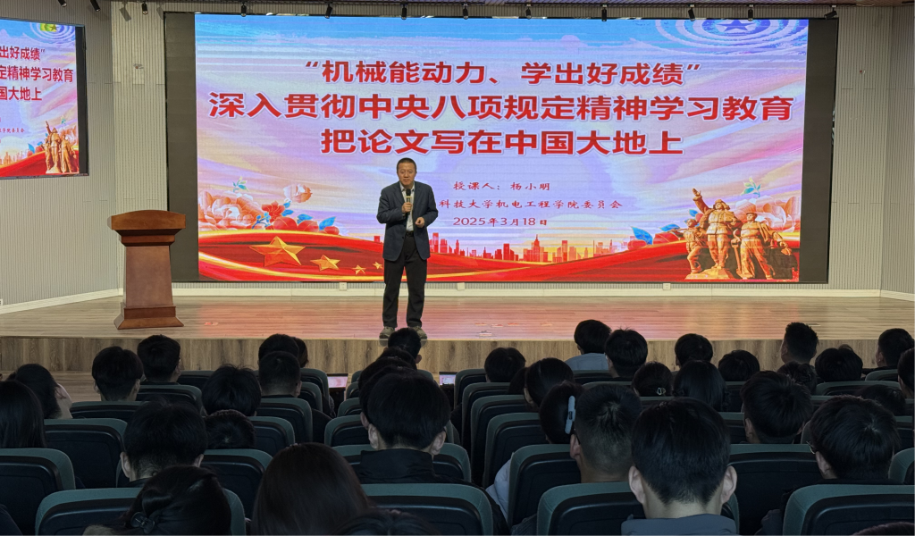 为推动深入贯彻中央八项规定精神学习教育,强化学生党员的党员意识,深化“机械能动力、学出好成绩”学风建设品牌,3月18日,Beat365官方网站召开学院学生党员大会。学院党委副书记杨小明、各年级主任、所有学生党员参加活动。