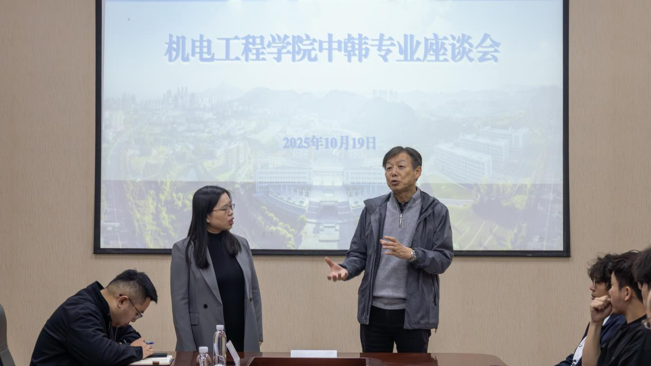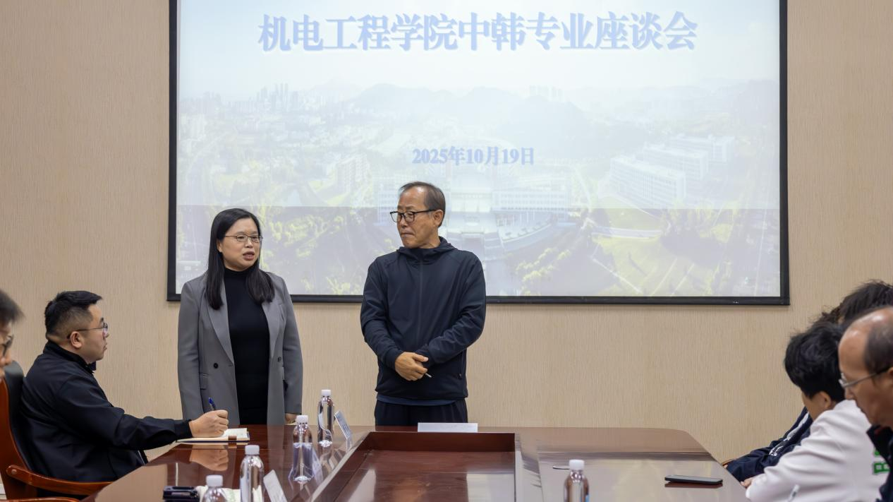 10月19日,Beat365官方网站在机电楼D3-518会议室举办2024级中韩专业座谈会。韩国汉阳大学梁铉益教授、赵南圭教授出席会议并为学院出国意向学生答疑解惑,学院2024级出国意向学生参加会议,学院副院长杨化林主持会议。