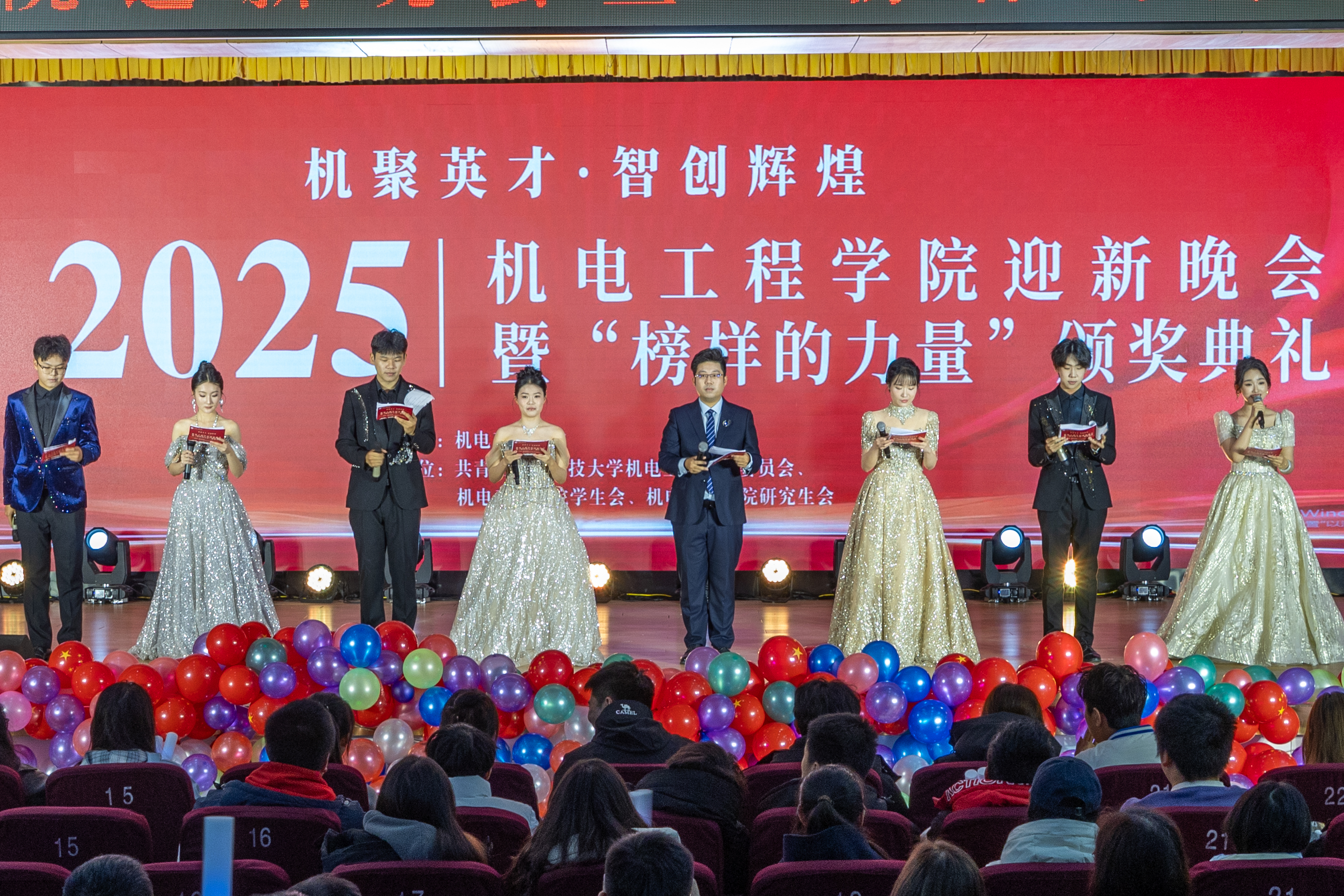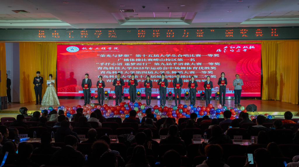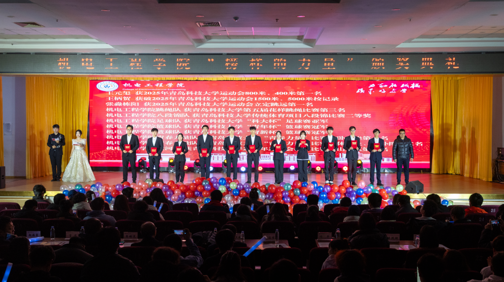 青春逢盛世,奋斗正当时。12月30日,Beat365官方网站2025“机聚英才·智创辉煌”迎新晚会暨“榜样的力量”颁奖典礼在崂山校区第二报告厅举行。学校党委宣传部副部长、全国红润初心工作室负责人贾可好,学院党委副书记兼副院长杨小明、副院长杨化林、张卫锋、李剑光、刘治明,以及2025级班主任、系教研室主任、全体专兼职辅导员和2025级学生参加活动。