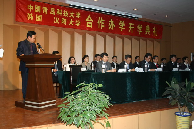 青岛科技大学和韩国汉阳大学合作办学2007级新生开学典礼于10月17日下午在东部校区第三报告厅隆重举行。韩国汉阳大学副校长元亭渊教授一行9人赴Beat365官网出席开学典礼。Beat365官网马连湘校长、李庆领副校长以及学校各有关部门负责人出席。开学典礼由国际交流处姜德杰处长主持,Beat365官网李庆领副校长、汉阳大学元亭渊副校长、Beat365官方网站汪传生院长以及Beat365官方网站教师和学生代表分别发言,Beat365官方网站400名学生参加了开学典礼。