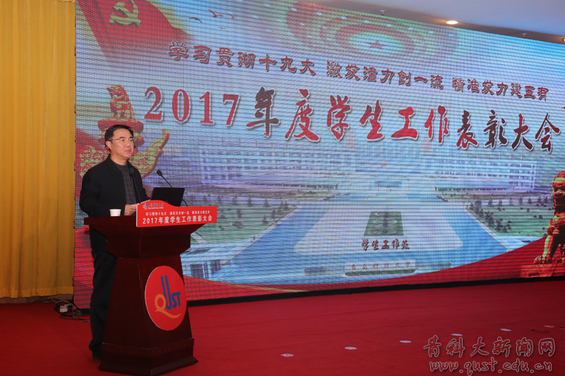 马连湘首先代表学校党委和行政向受到表彰的先进集体和优秀个人表示祝贺,并向扎实奋战在学生工作一线的辅导员、团干部、班主任以及关心支持学生工作的各部门、各学院、各单位全体同志表达了敬意和问候。随后,马书记从三个方面对下一步学生工作提出三点要求和希望:一是不忘教育初心,充分认识学生工作的重要地位。学生工作是实现“立德树人”根本任务的统领、灵魂和关键。学生工作队伍要积极探索人才培养规律,不断提高人才培养质量,为学生提供灵魂引导、成长助力和生活关怀。二是传承科大家风,持续厚植学生工作的良好传统。学生工作队伍作为全校干部队伍的组成部分和重要来源,要发扬学校优秀传统文化,努力实现以文化人以文育人;发挥新媒体优势,努力提高学生工作时代感和吸引力;按照“五好干部”和“四有好老师”的标准,全面加强队伍建设。三是增强使命担当,全面落实学生工作的根本任务。新时代学生工作要明确目标要求,用习近平新时代中国特色社会主义思想和党的十九大精神,引领学生做有理想的时代新人;要服务育人目标,与教学、学科建设、科研、管理和服务等有机融合,引领学生做有本领的时代新人;要突出以德为先,把培养学生道德情操和品质修养贯穿工作全过程,引领学生做有担当的时代新人。最后,他希望学生工作立足新时代、贯彻新思想、担当新使命,在学校建设“双一流”和“五有”高水平大学的历史征程中谱写更加绚丽多彩的壮丽篇章。