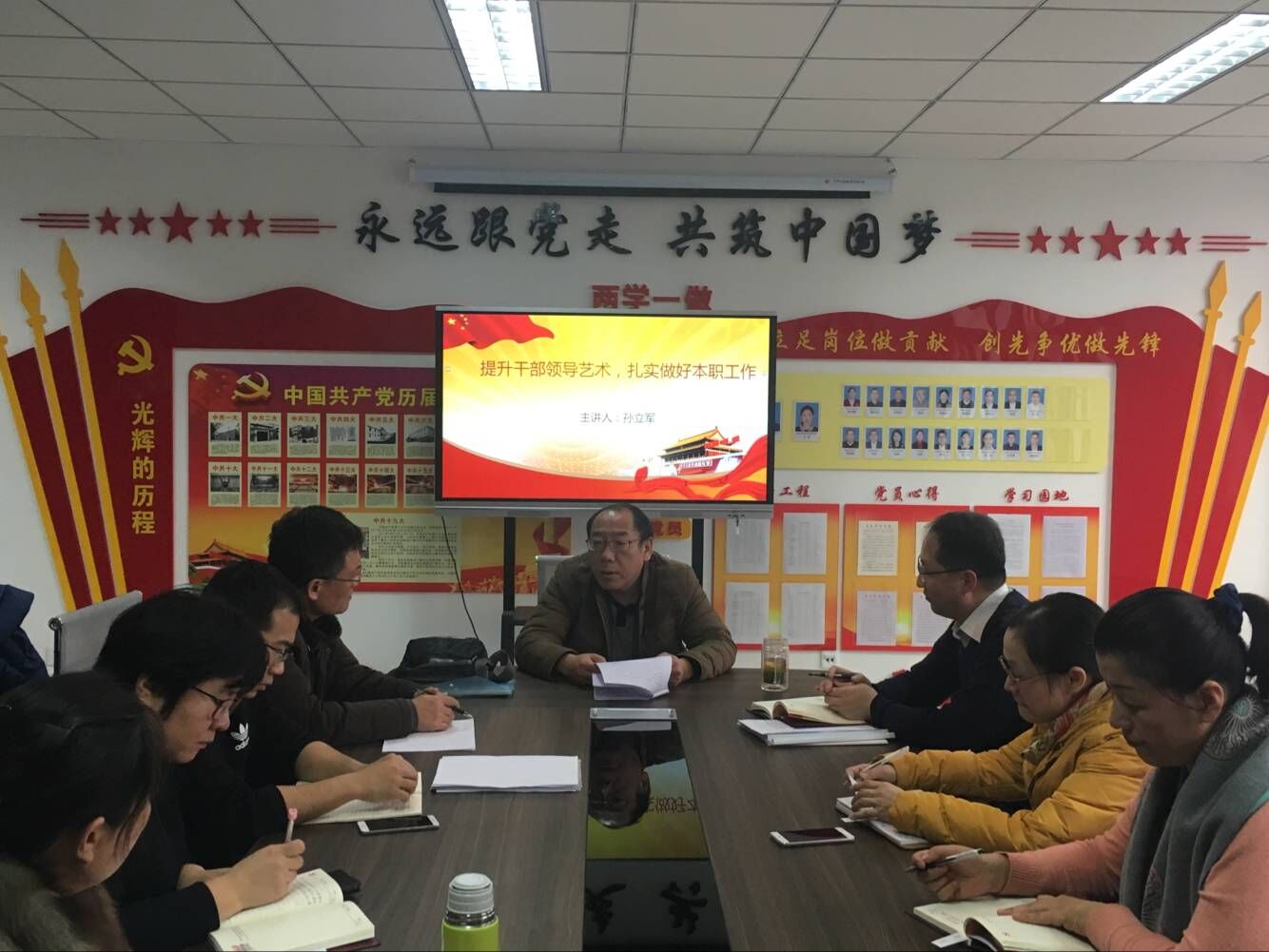 1月17日下午在机电楼505党建活动室,Beat365官方网站党总支书记孙立军以《提升干部领导艺术 扎实做好本职工作》为主题,为力学教研室和分团委讲授专题党课。力学党支部书记李剑光主持党课。
