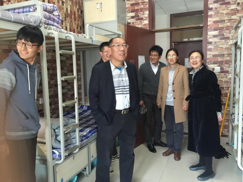 何燕一行先后来到北苑6号楼和3号楼的2017级、2015级和2014级学生宿舍,亲切地与学生们进行交谈,详细了解学生返校情况、思想动态、学习状态和生活实际,着重对2017级能源与动力工程专业、高分子机械加工专业“联系班级”的寝室进行走访看望,叮嘱大一学生时刻注意安全隐患、提高火灾防控能力,询问大四学生的毕业去向、对已考取硕士研究生的同学们提出殷切希望。听到院领导真诚的关怀与问候,同学们纷纷围拢过来、热情地邀请领导到自己的“小家”。在走访过程中,院领导还与公寓管理员进行了交流,对他们的辛勤付出表示感谢,并对管理员在学生宿舍管理中提出的细节问题整改落实。