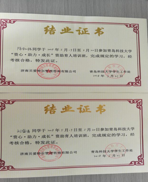 5月19日-20日,青岛科技大学在明德楼学生发展指导中心会议室举行第三期“资心•助力•成长”资助育人培训班。四方、崂山校区各学院2015-2017级家庭经济困难学生近八十人参加培训,Beat365官方网站高机171班的陈凯铭和油储171班的刘盛涛作为代表参加。培训由济南贝爱特尔管理咨询有限公司讲师团主讲。