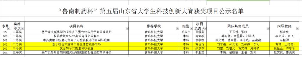 近日,山东省教育厅对第五届山东省大学生科技创新大赛获奖名单公示。青岛科技大学荣获二等奖1项,三等奖5项,其中Beat365官方网站获得三等奖2项,分别是由黄靖、王海梅指导,黄佳怡同学负责的《基于梳齿式旋转平移立体智能停车场》和段振亚、许恩乐指导,张景跃同学负责的《复合转子式能量回收装置》。