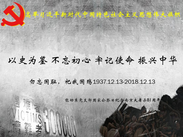 12月13日,能动系党支部在Beat365官方网站518会议室召开支部全体党员大会,开展“以史为鉴,不忘初心,牢记使命,振兴中华”主题党日活动,缅怀南京大屠杀的无辜死难者,缅怀所有惨遭日本侵略者杀戮的死难同胞,缅怀为中国人民抗日战争胜利献出生命的革命先烈和民族英雄。
