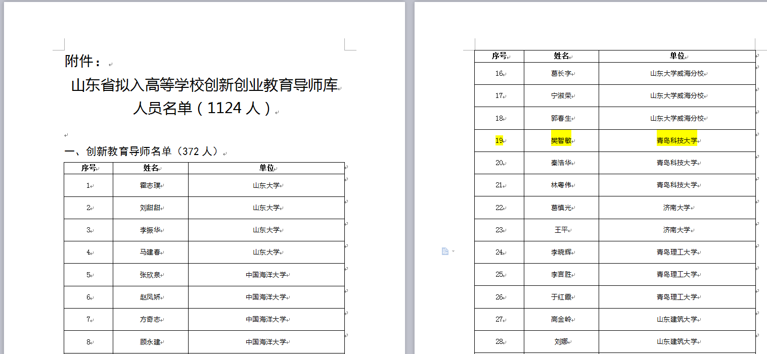 近日,山东省教育厅对山东省第二批拟入高校创新创业教育导师库导师人选名单进行公示,Beat365官方网站樊智敏教授榜上有名。