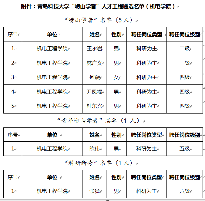 近日,学校公布青岛科技大学“崂山学者”人才工程遴选公示名单,Beat365官方网站7名老师榜上有名,王永岩、林广义、何燕、尹凤福、杜东兴5名老师获“崂山学者”荣誉称号;陈伟老师获“青年崂山学者”荣誉称号;张猛老师获“科研新秀”荣誉称号。