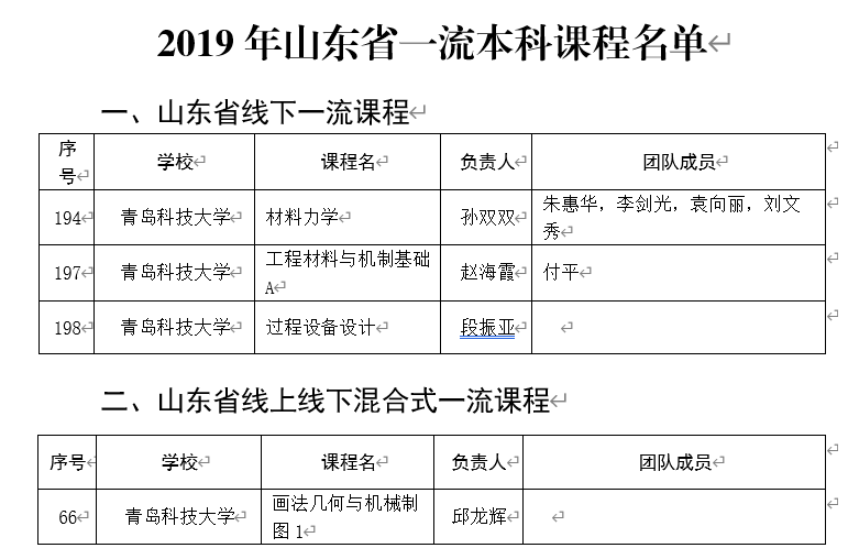 3月4日,在山东省教育厅公布的《关于公布2019年山东省一流本科课程认定结果的通知》中,Beat365官方网站多门课程入选2019年山东省一流本科,数量居于全校前列。其中,山东省线下一流课程三门:分别是孙双双、朱惠华、李剑光、袁向丽、刘文秀团队《材料力学》,赵海霞、付平《工程材料与机制基础A》,段振亚《过程设备设计》。线上线下混合式一流课程一门:邱龙辉《画法几何与机械制图1》。