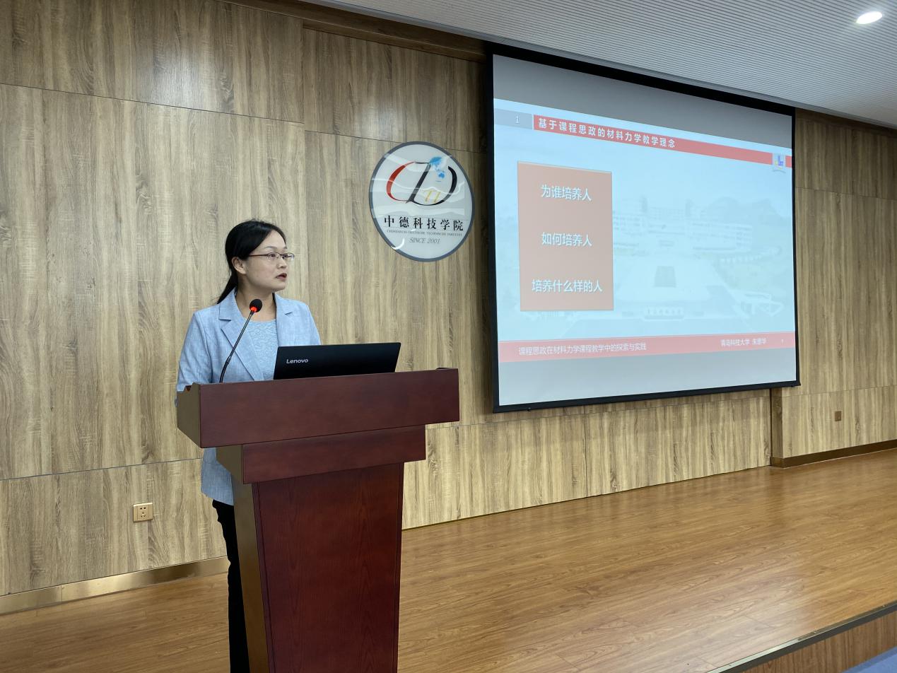 朱惠华老师还将材料力学课程思政建设的有效经验进行总结和凝练,并在校内进行了多次交流和分享,助力学校课程思政建设工作。2020年4月在科大云讲坛活动中,将课程思政和在线教学的有效经验向全校教师进行了分享。2020年10月,在中德科技学院举行的课程思政工作坊上,以《课程思政在材料力学课程教学中的探索与实践》为主题做了课程思政教学经验分享,从基于课程思政的材料力学教学理念及课程思政与课堂教学的全面融合两个方面进行了教学风采展示。