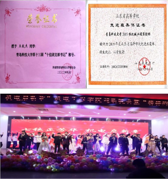 ■为庆祝青岛科技大学70周年校庆暨五四运动101周年,Beat365官方网站学生会特举办“喜迎青科七十载,谱写五四新华章”线上朗诵活动以及“情系科大创辉煌,争当先锋传薪火”线上作品征集等系列活动,结合疫情的特殊情况,学院举办了线上体能挑战赛,不断争做一流学生组织。