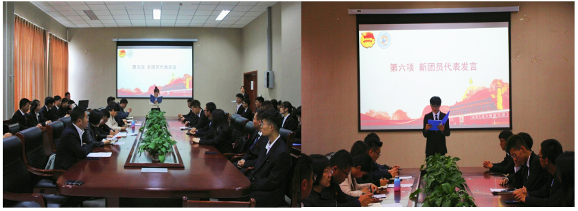 优秀团员代表张晓楠分享到:团员是一种奉献精神,是一种责任担当,青年团员应积极传扬五四精神,脚踏实地的奋斗,在美好的青春年华逐梦奋进。新团员代表王永刚表示:加入共青团是人生新的启航,将会珍惜青春年华,认真学习,不断提高思想觉悟,不断提高自己各方面的能力,继承共青团的优良传统,成为一名优秀的共青团员。