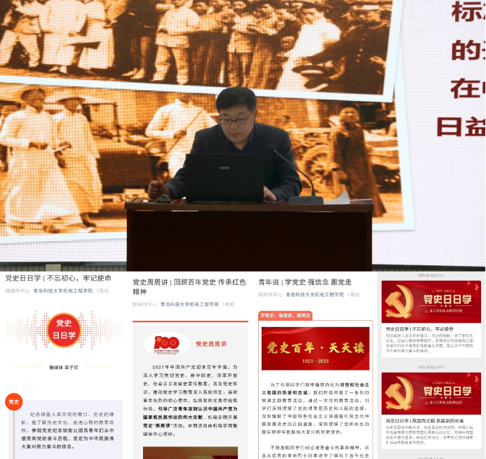 搭建党史学习教育“云学堂”。为强化新发展团员的责任感和使命感,Beat365官方网站举行“奋斗百年路,青年勇争先”新团员入团仪式暨“机电青年驿站”组建启动式,学院团委书记王作辉作了题为《做合格团员——团史教育》主题团课,引导团员青年在学习百年党史中汲取砥砺奋进力量。Beat365官方网站通过开设“青年说”栏目,邀请“两员一心”代表等方式,鼓励青年学生敢于亮剑发声,树立榜样力量。